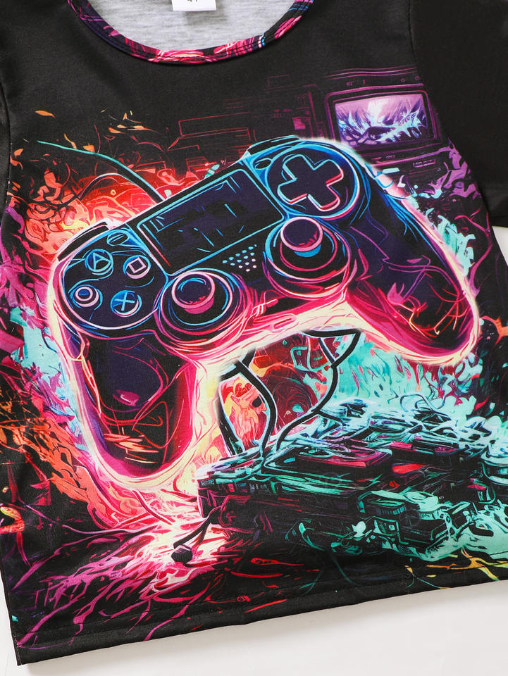 Set di abbigliamento estivo in tre pezzi personalizzato da ragazzo per Console di gioco con Joystick modello pantaloncini a maniche corte ispirati a Cyberpunk