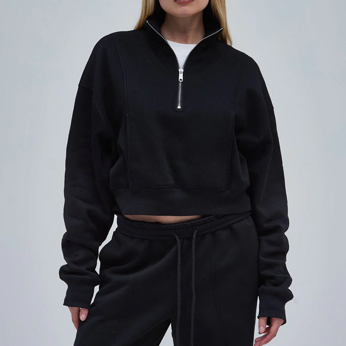 Felpe Estive Casual da Donna Personalizzate con Stampa, Mezza Zip, Crop Top, Spalle Scivolate, Produzione OEM