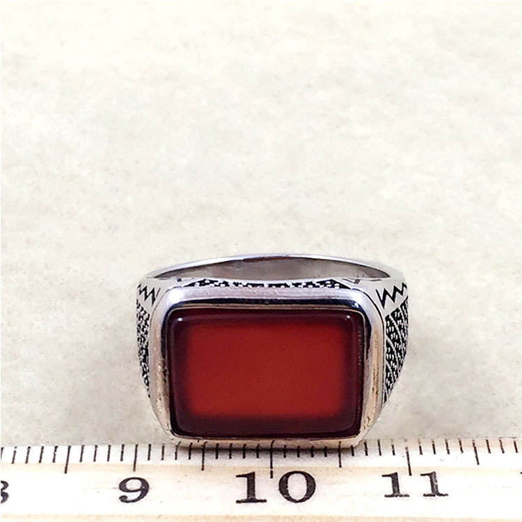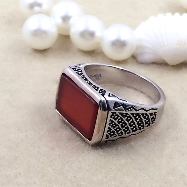 Anello da Uomo Personalizzato con Logo del Marchio, Stile Vintage in Argento Sterling 925 con Agata Rossa Regolabile, per Fidanzamento, Matrimonio, Festa o Regalo