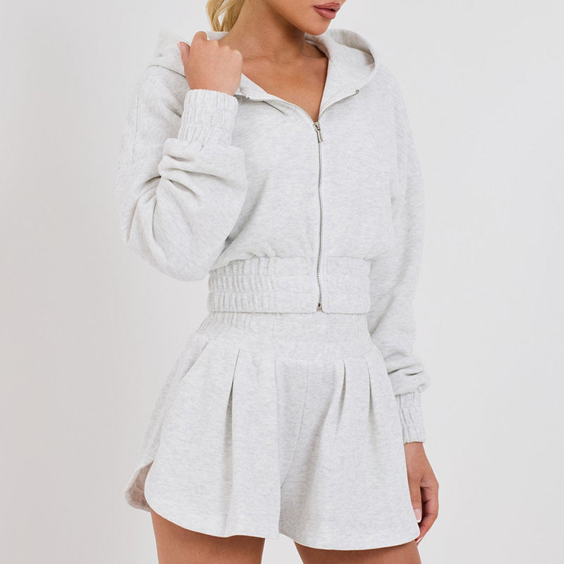 Giacca personalizzata traspirante con cerniera e cappuccio pantaloncini sportivi da ginnastica set da salotto sportivi da donna abiti da Streetwear morbidi in pile