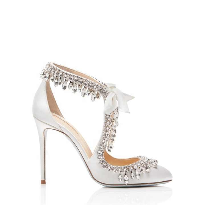 Produttore di scarpe da sposa personalizzate scarpe da sposa bianche da donna con strass a punta da donna con tacco a spillo personalizzato
