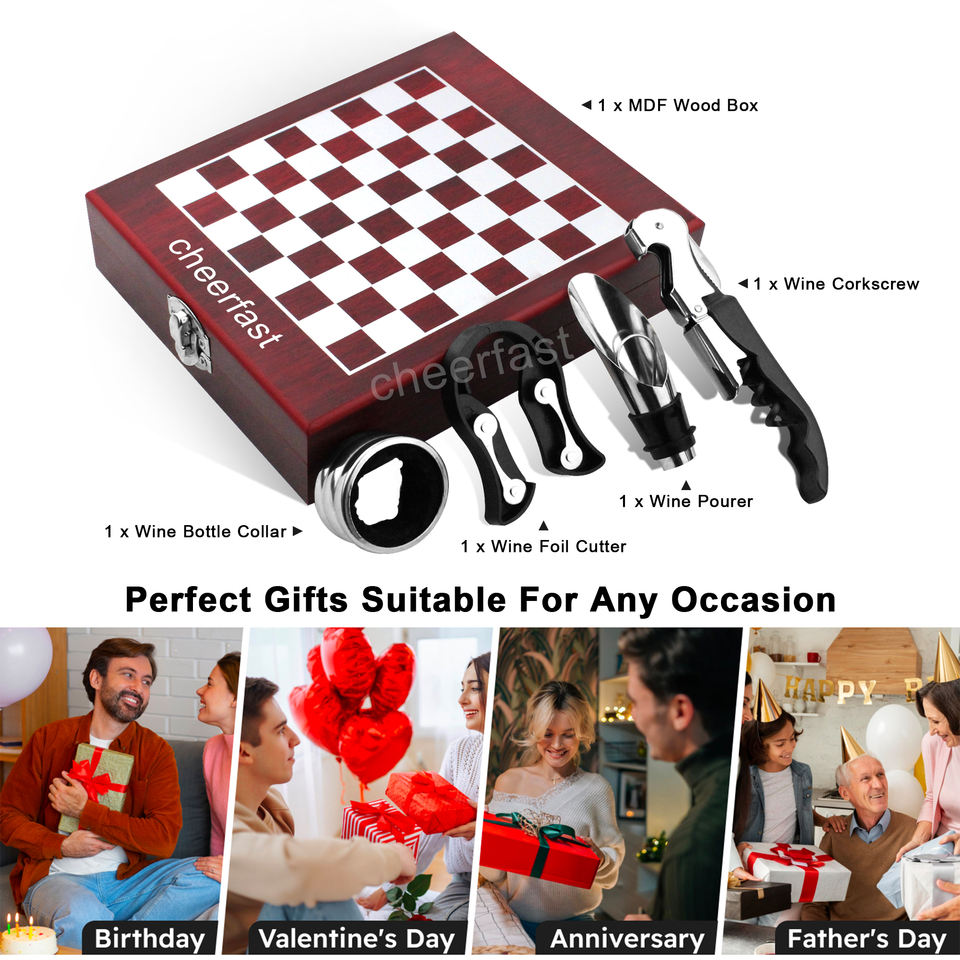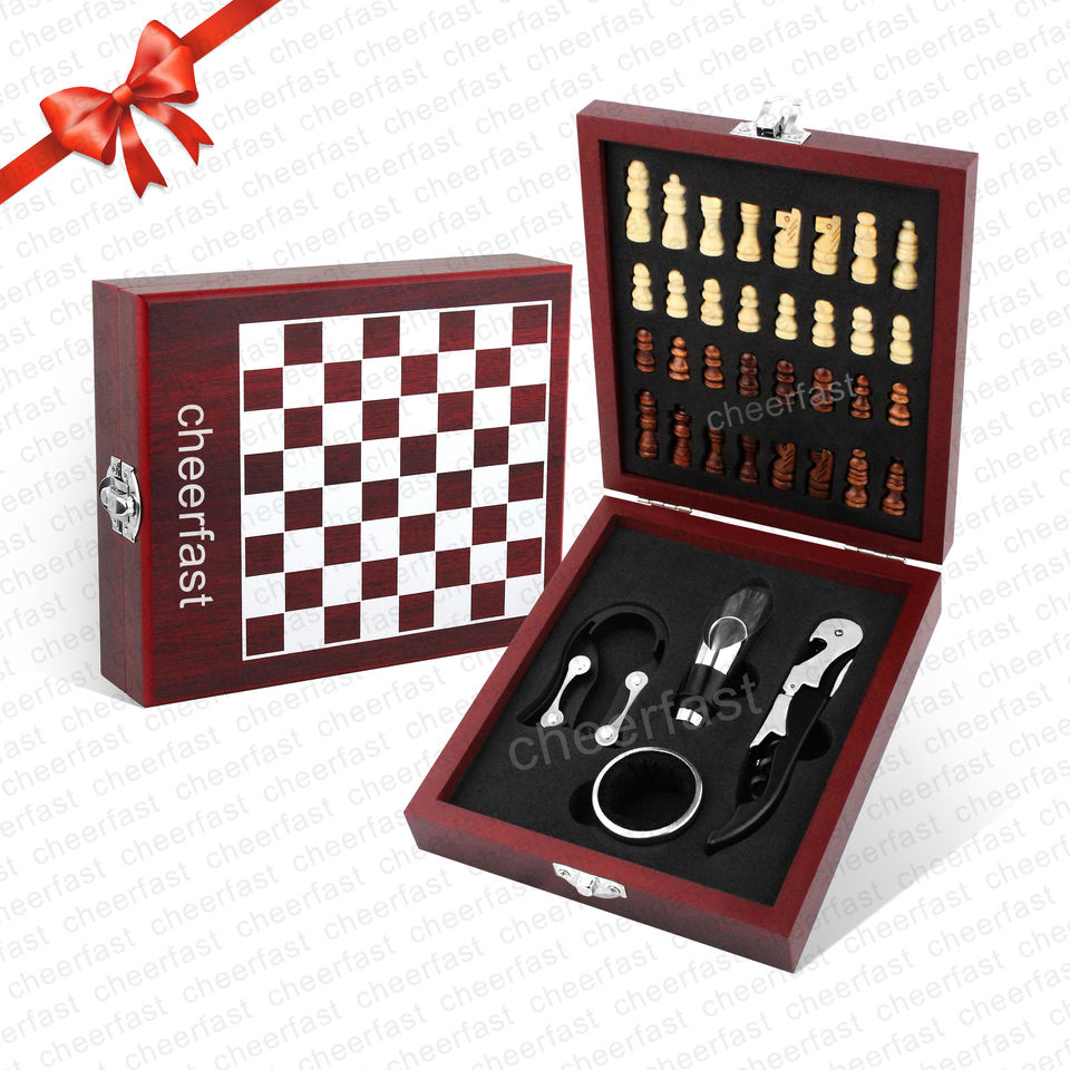 Accessori:Set di 4 utensili per vino con scacchiera