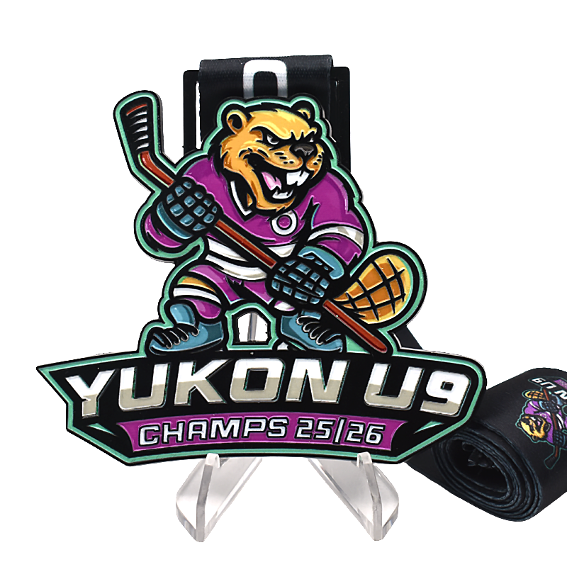 Custom Cartoon Beaver Youth Hockey Medal UV Printing Personalized Yukon U9 Champs 25 26 Sports Award Lanyard Kids Tournaments