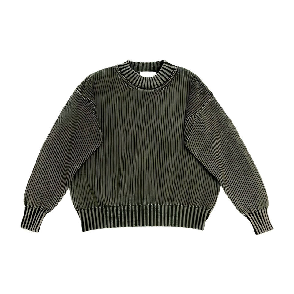 Maglione Casual da Uomo Personalizzato Lavaggio Vintage Oversize Girocollo in 100% Cotone Lavorato a Maglia