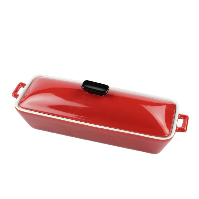 Padella per pane francese con coperchio in ceramica su misura per panettiere francese in gres a forma di rettangolo