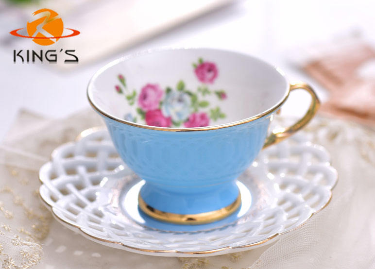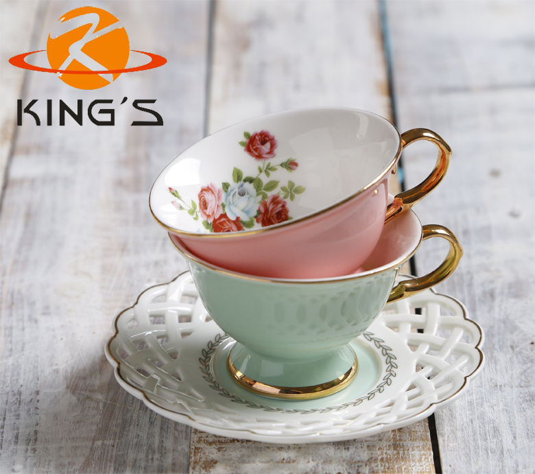 Set di tazze in ceramica personalizzate con design intagliato cavo fiore di rosa moderno lusso all'ingrosso colore porcellana tè tazza e piattino