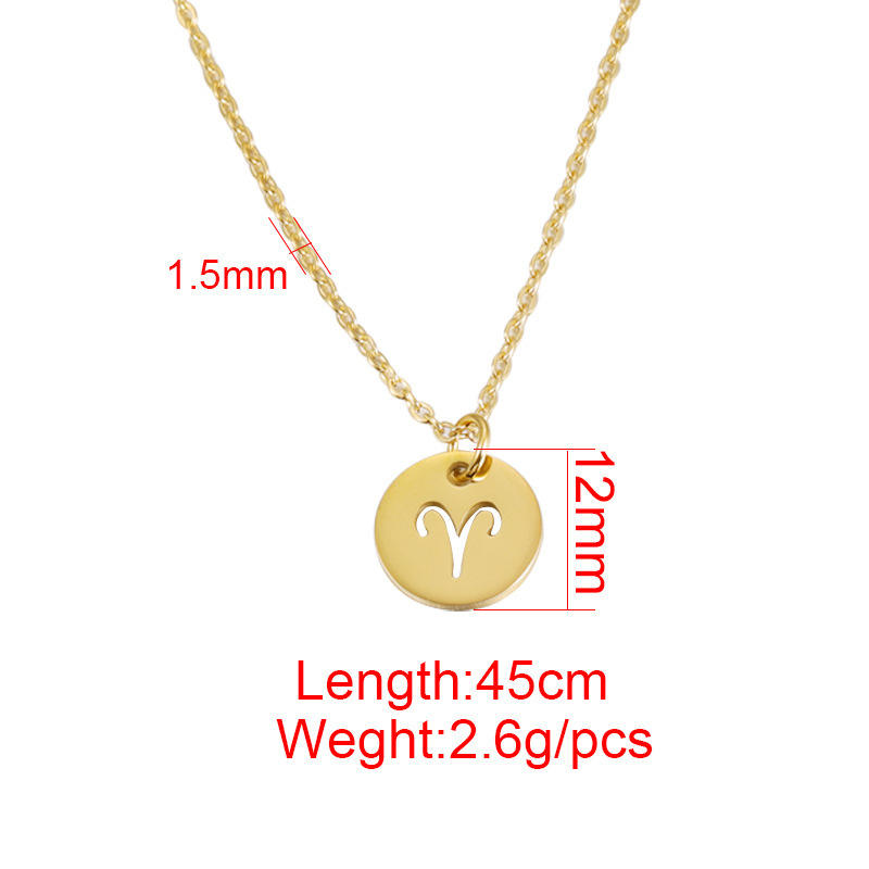 Keyword:12 Zodiac Sign Disc Pendant Necklace