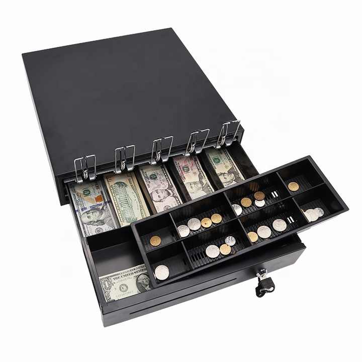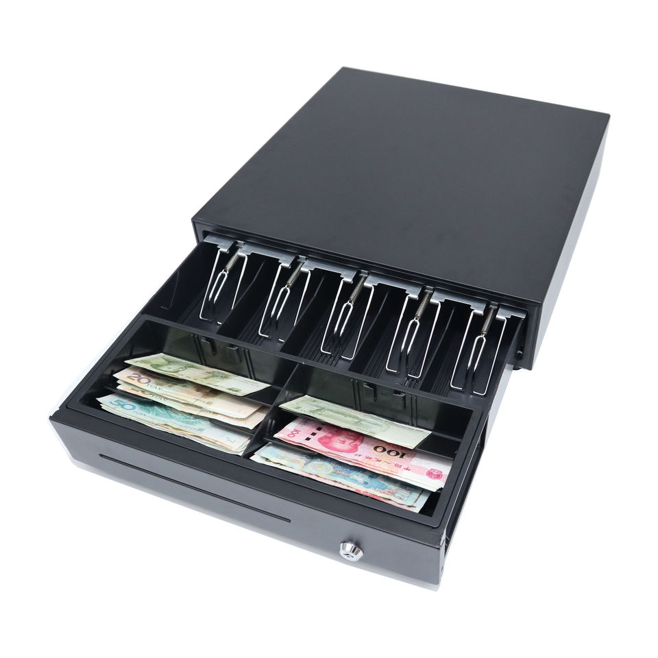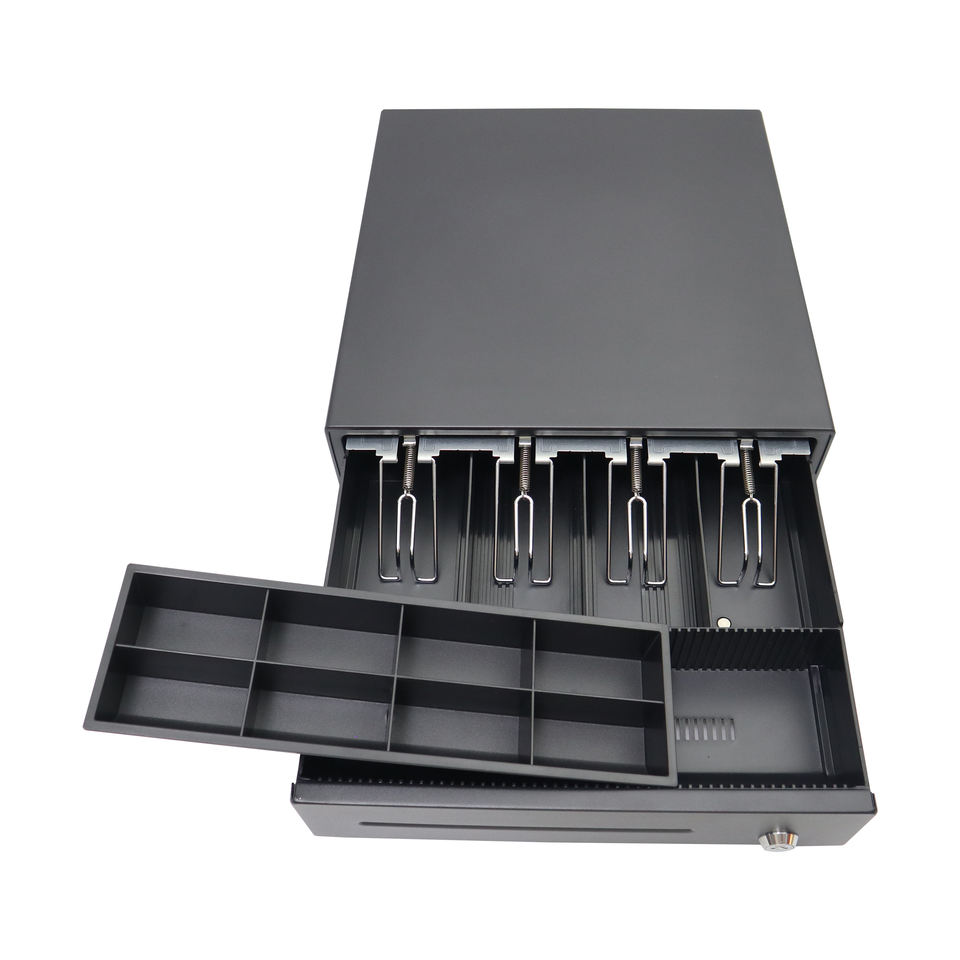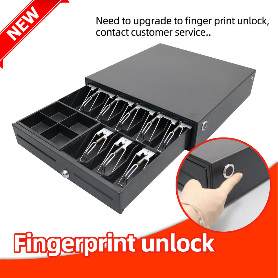Personalizzato a buon mercato 5 bill 8 moneta registratore di cassa vassoio cuscinetto a sfere scivolo pos 410 cassetto contanti RJ11 per il commercio all'ingrosso di sblocco delle impronte digitali