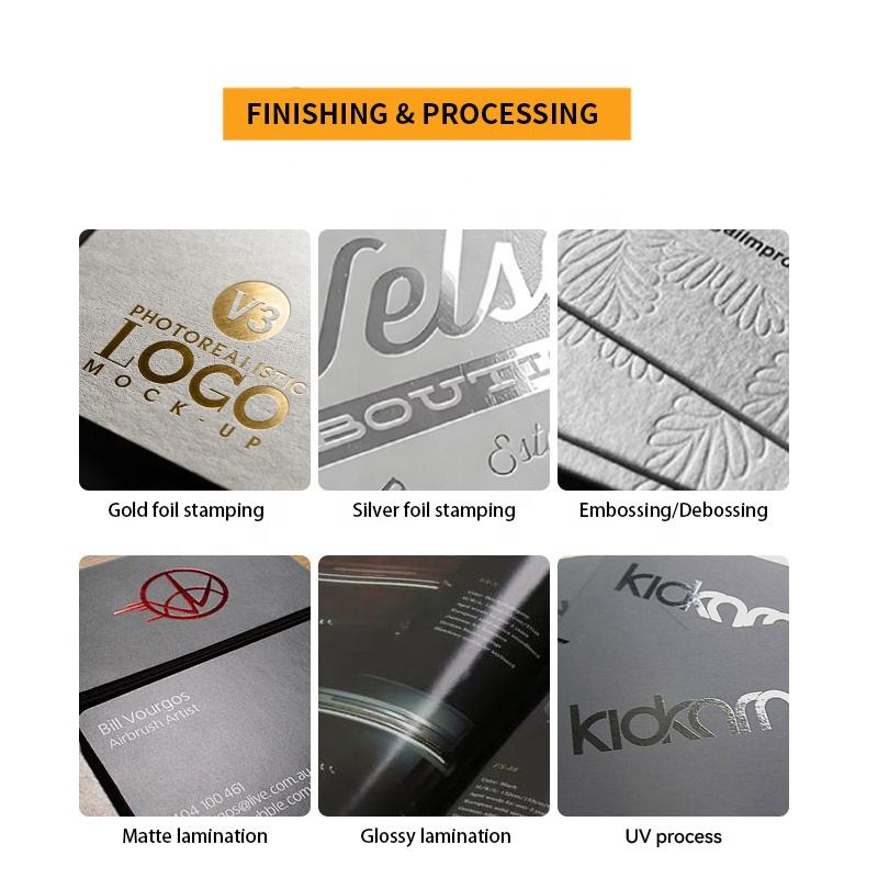 Lavorazione di stampa:Plastificazione opaca, Verniciatura, Stampaggio, Goffratura, Plastificazione lucida, Rivestimento UV, Foglia doro