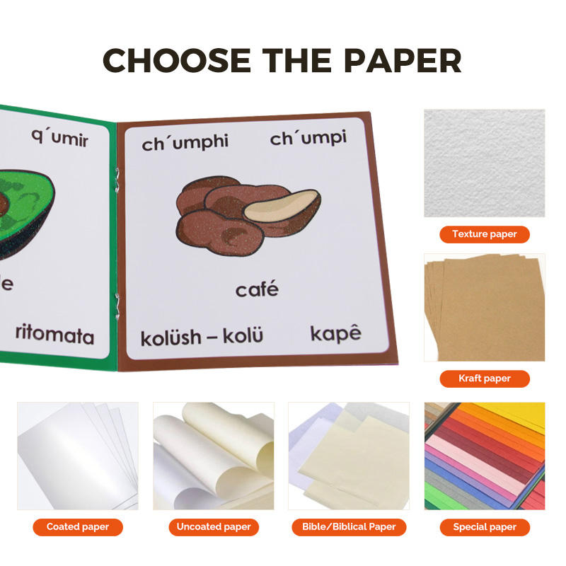 Pagina interna glitterata colorata di frutta per bambini personalizzata libro di apprendimento cognitivo per bambini di educazione precoce realizzata con carta resistente