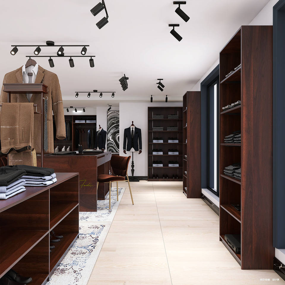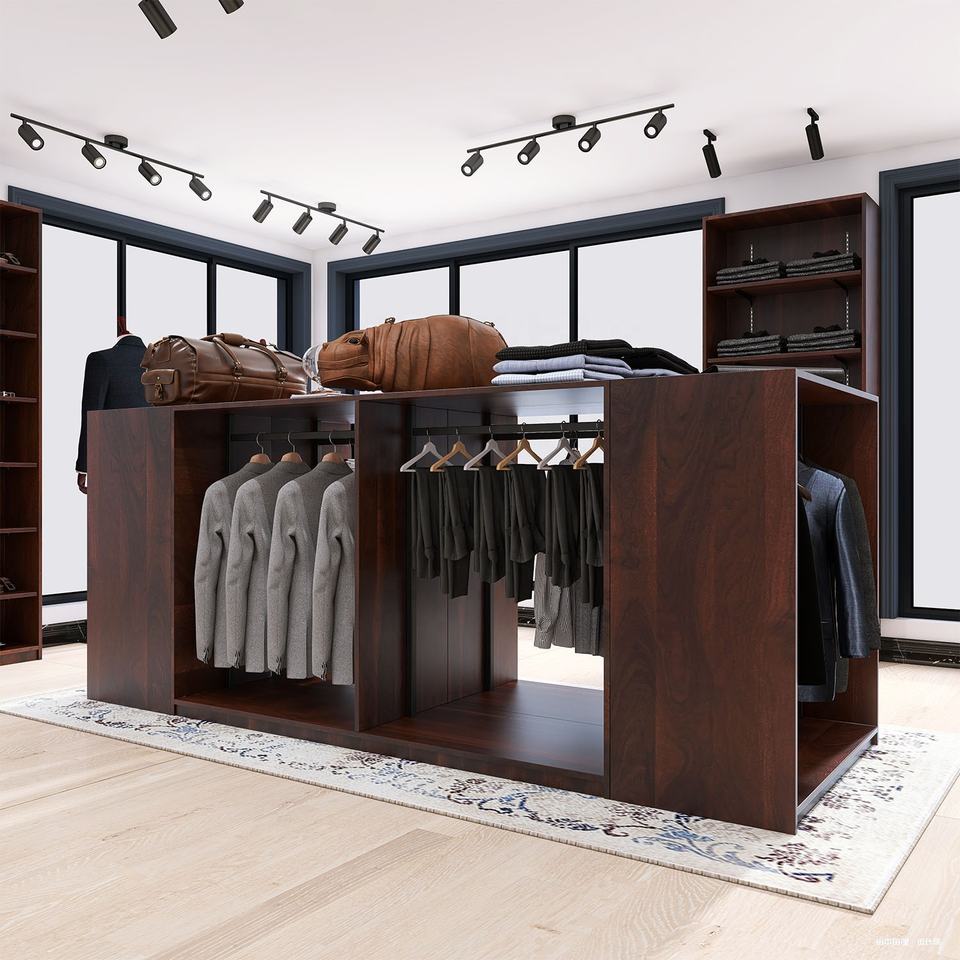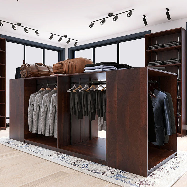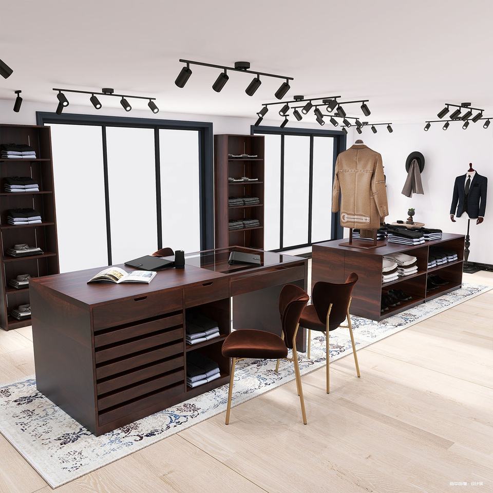Custom Chinese Small Shop Retail Products Furniture Wooden Garment Suit Display Stand Rack Store