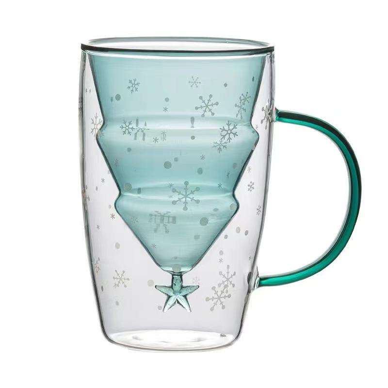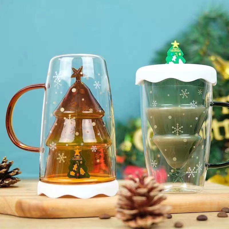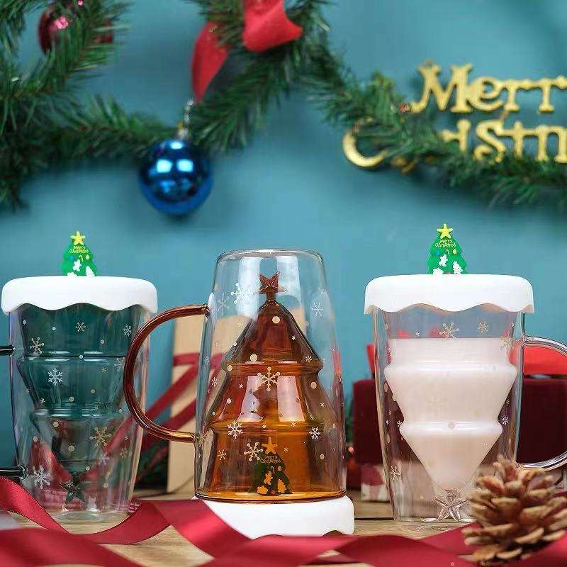 Personalizzato Tazza Di Natale creativo di natale tazza tazza di vetro 300ml A Doppia Parete di Vetro Tazza Carino Tazza Con Manico