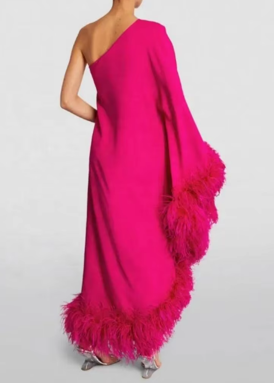 Custom Clothing Manufacture Luxury Evening Dress One-Shoulder Elegant Dress Plus Size Party Evening Dress with Ostrich Feather