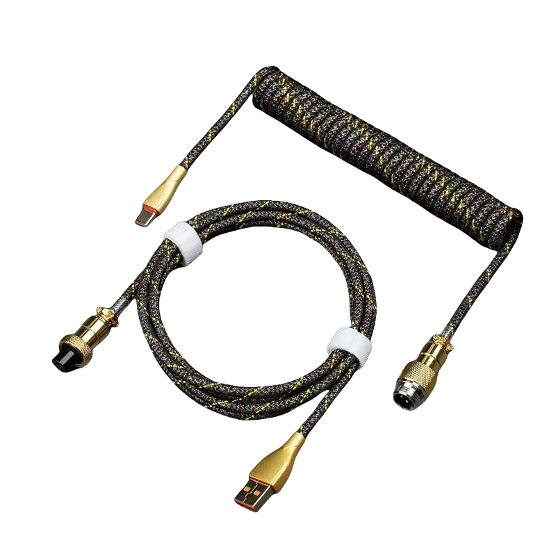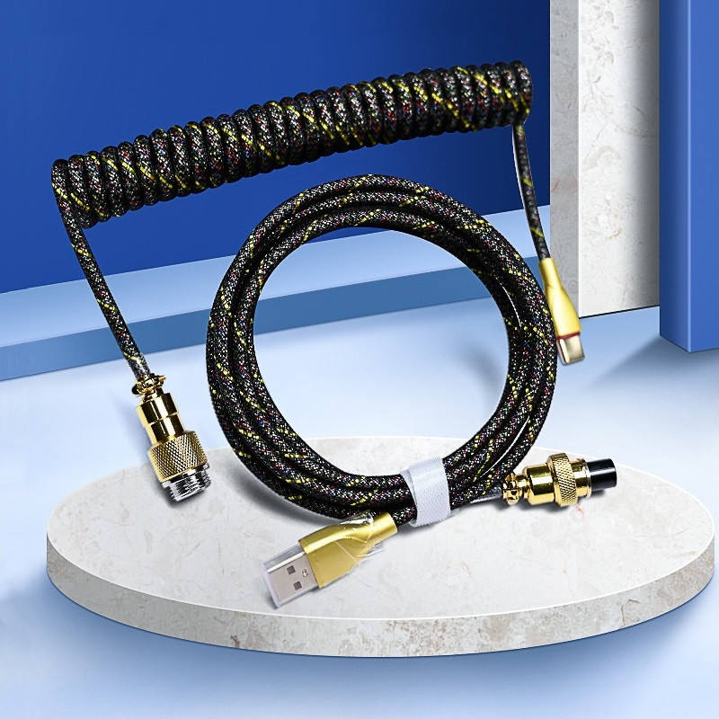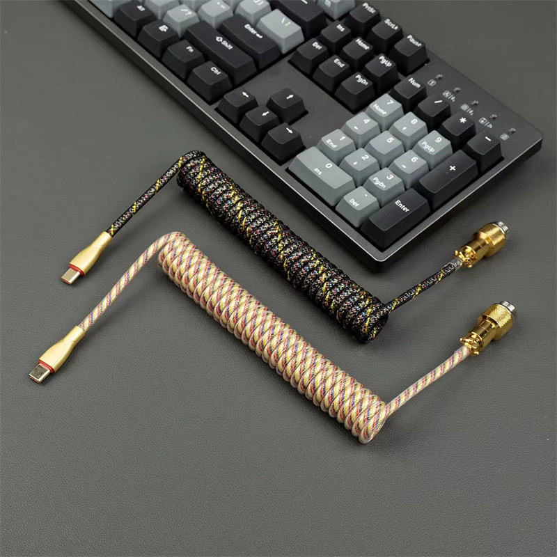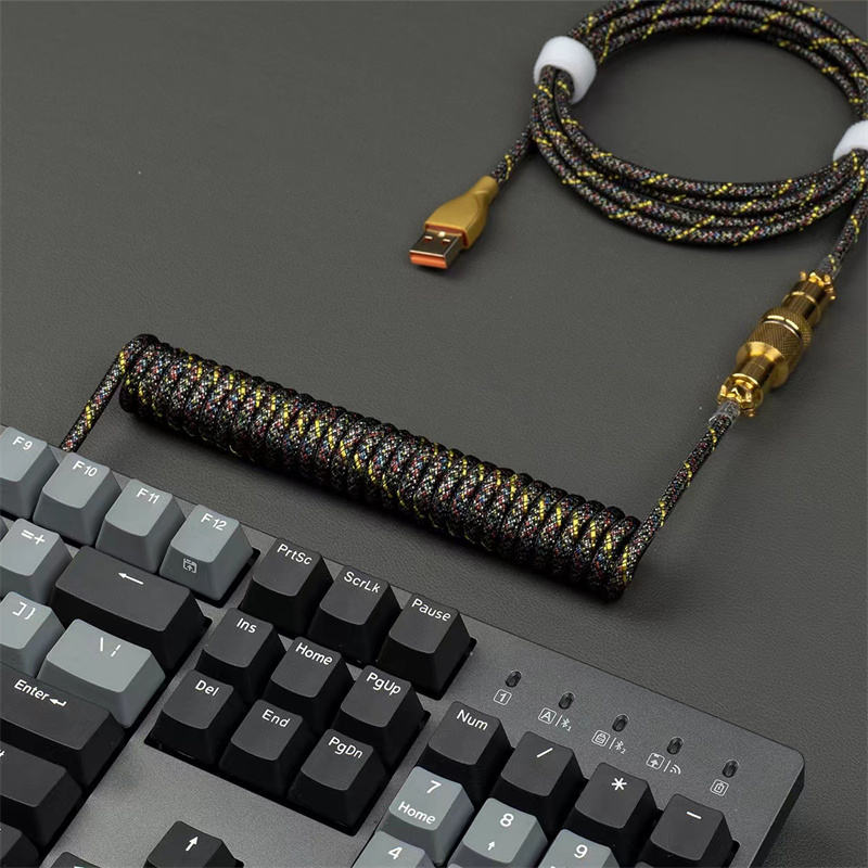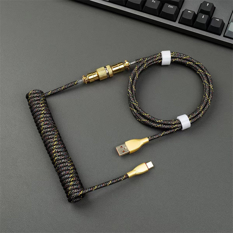 Cavo USB C a spirale personalizzato con doppia guaina, staccabile, con connettore metallico Aviator, da USB C a USB A, per tastiera meccanica da gaming