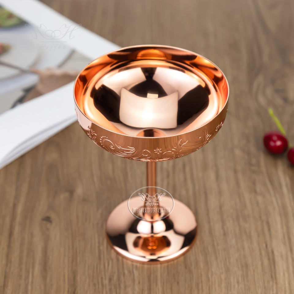 Calice da Cocktail in Acciaio Inox Oro Rosa 250ml 8oz con Motivo Inciso Personalizzabile per Bar e Ristoranti