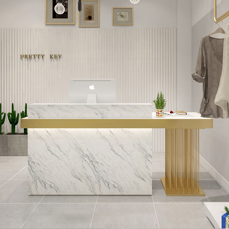 Bancone Reception Personalizzato in Marmo Verniciato per Salone di Bellezza, Bar e Negozio