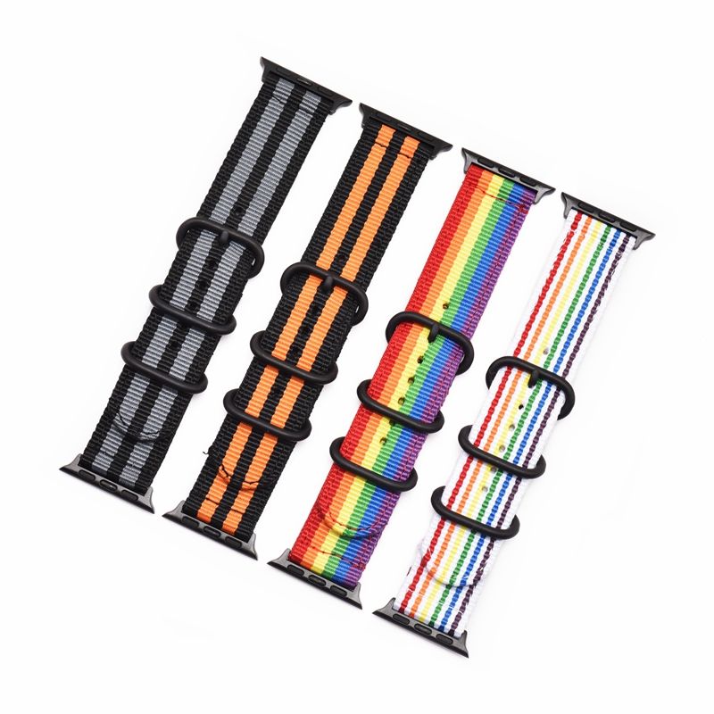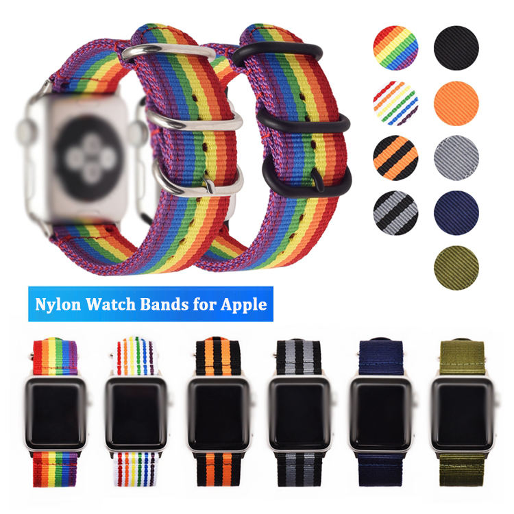 Nome:All'ingrosso cinturino in Nylon arcobaleno a doppio anello per Apple Watch