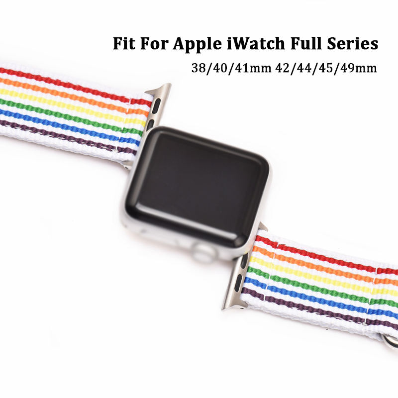 Cinturino per orologio in Nylon di colore personalizzato due pezzi con nastro in Nylon a strisce arcobaleno per Apple IWatch Ultra 38mm 49mm
