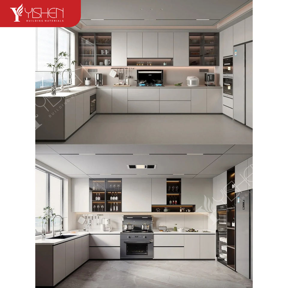 Cucina Completa di Lusso su Misura con Mobili Modulari in Alluminio e Legno Laccato, Set Intelligente con Rubinetto, Personalizzazione per Tutta la Casa
