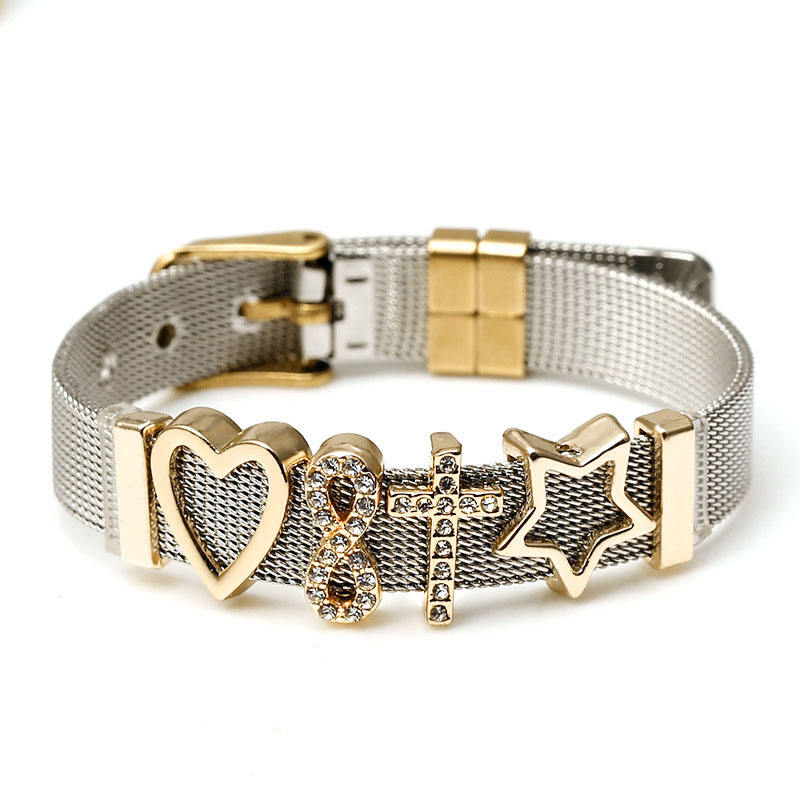 Contattaci per maggiori stili: Charm scorrevoli in lega di zinco da 10 mm all'ingrosso per bracciali in acciaio inossidabile a maglie
