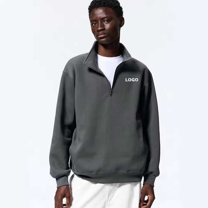 Felpa con Cappuccio da Uomo Personalizzata in Cotone Oversize con Zip 1/4 e Collo a Imbuto