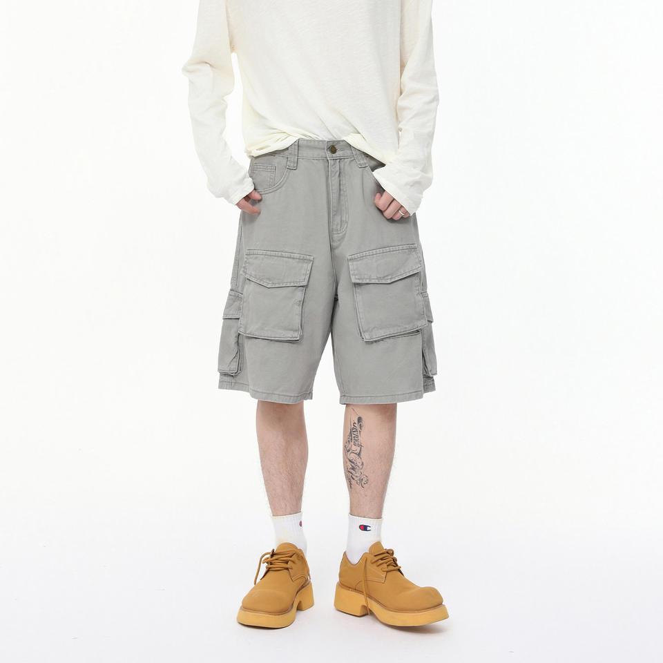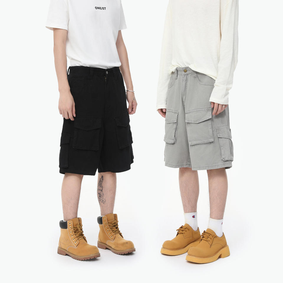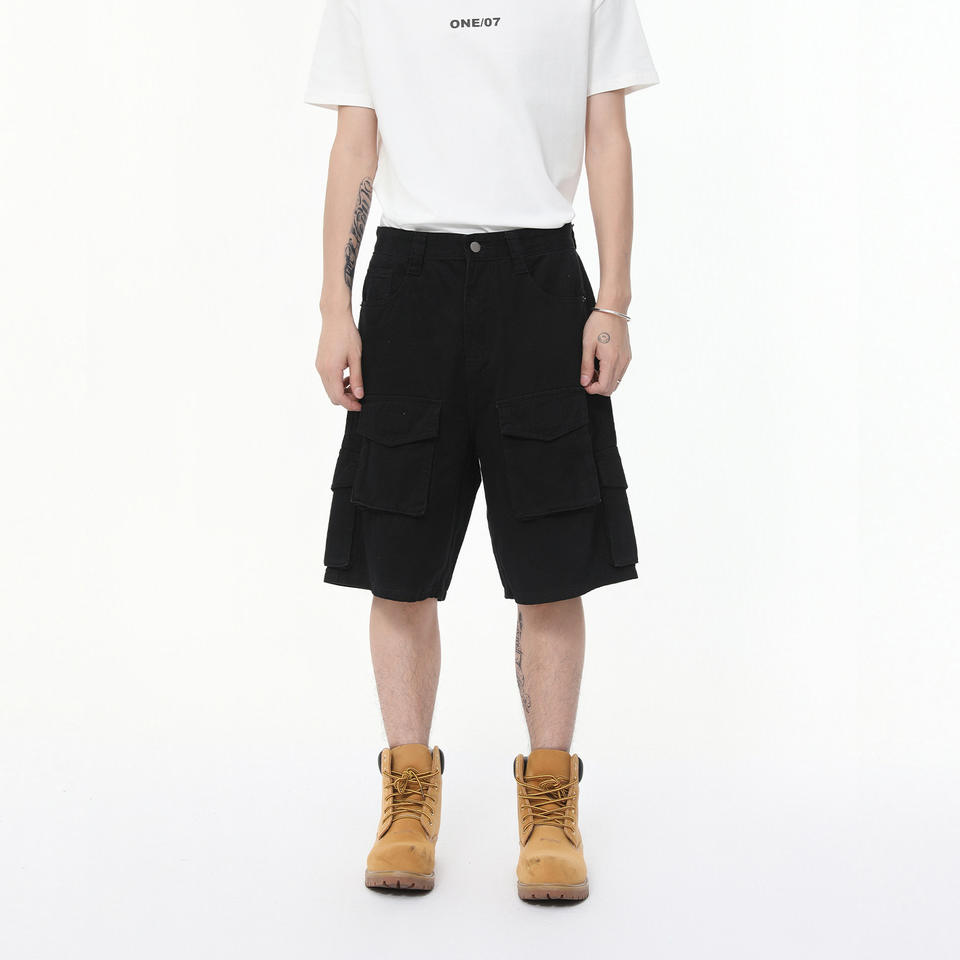 Pantaloncini Cargo in Denim di Cotone Personalizzati con Tasche Multiple, Pantaloni Corti Casual Larghi per Uomo