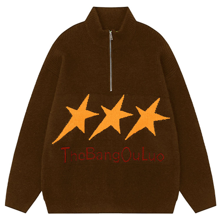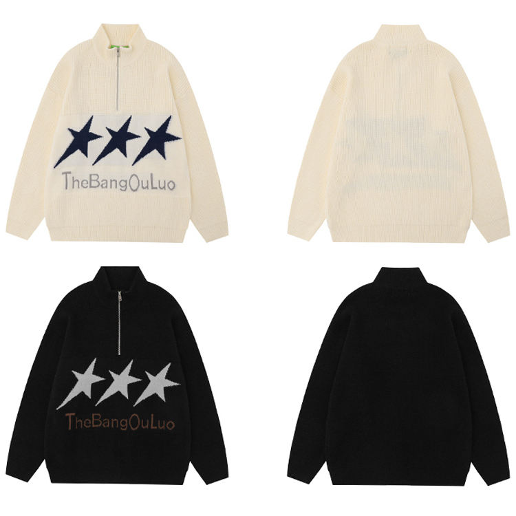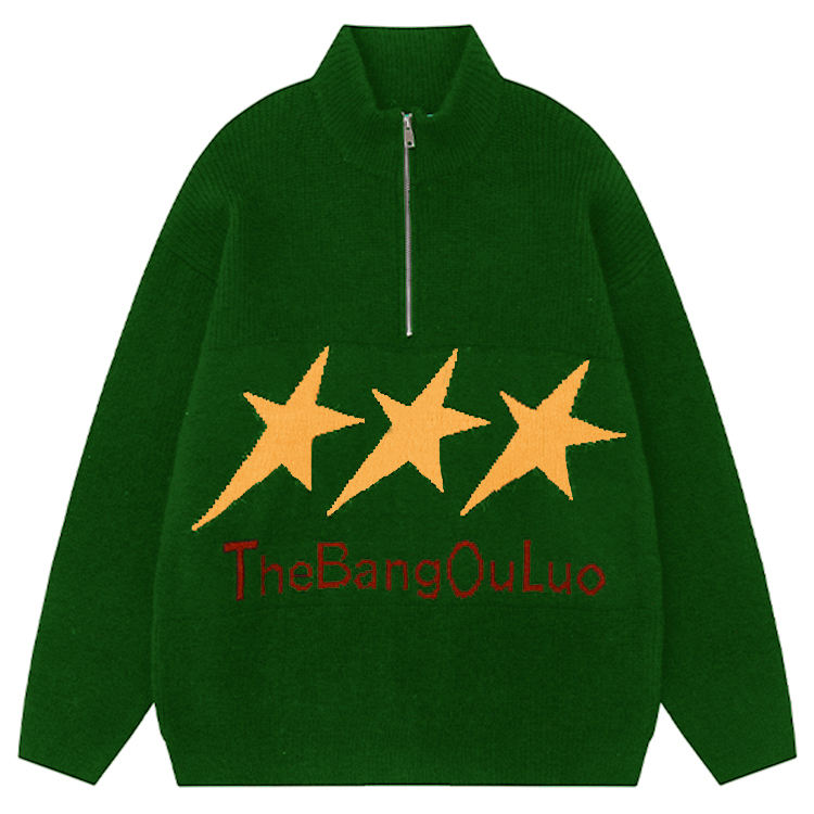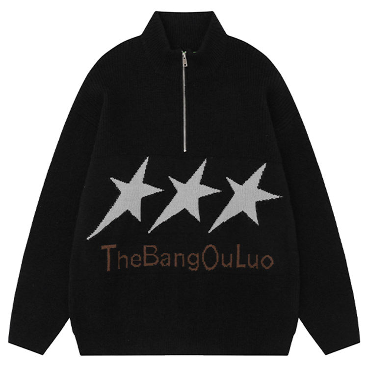 Maglione da uomo in cotone e lana personalizzato a manica lunga semplice con scollo a mezza cerniera