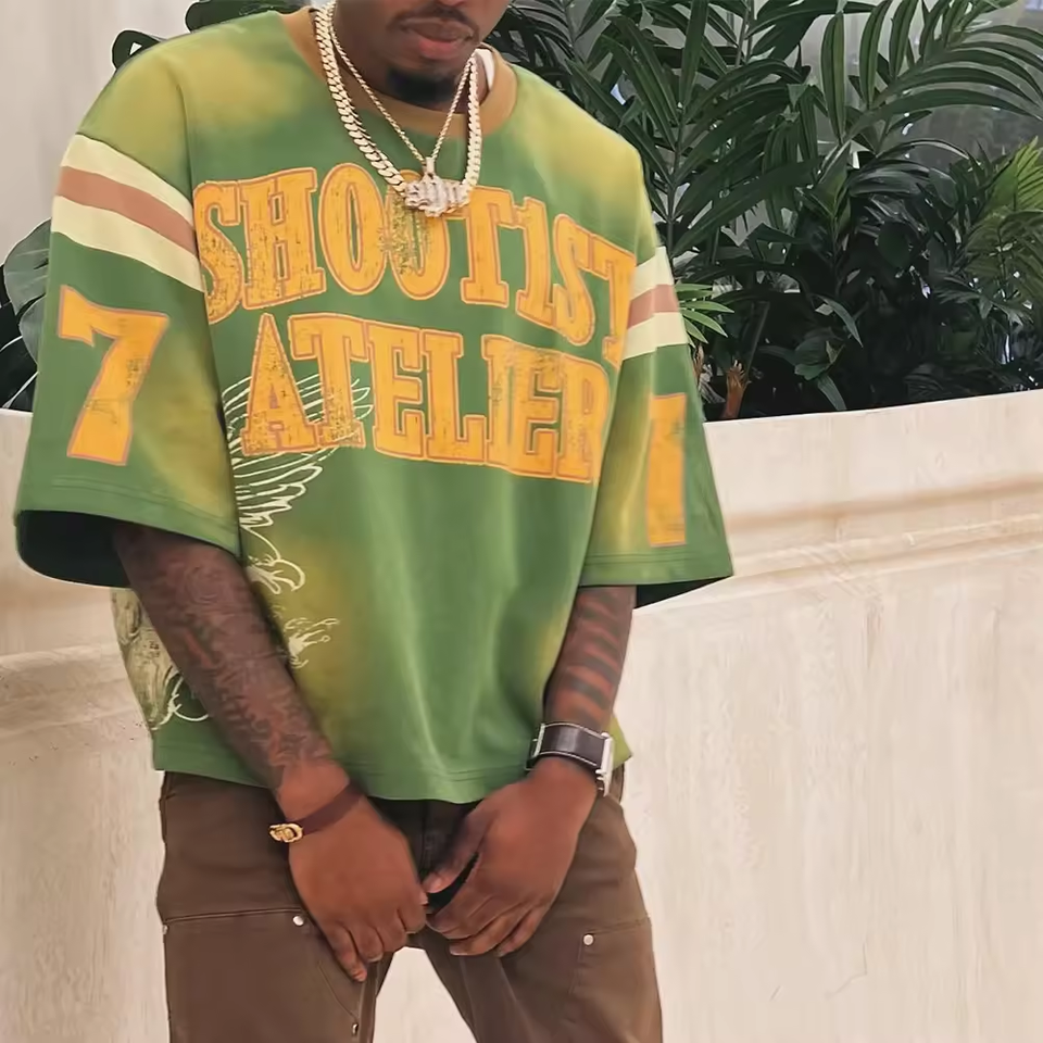 Maglietta a girocollo personalizzata con schermo sbiadito da sole in cotone oversize Vintage lavato con acido a tracolla