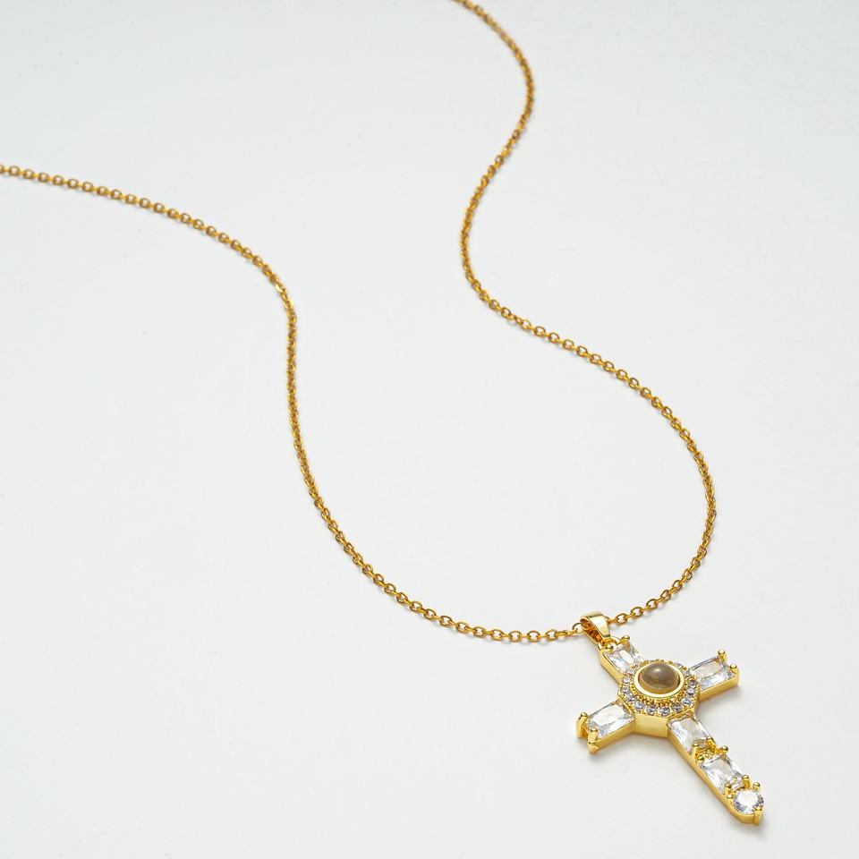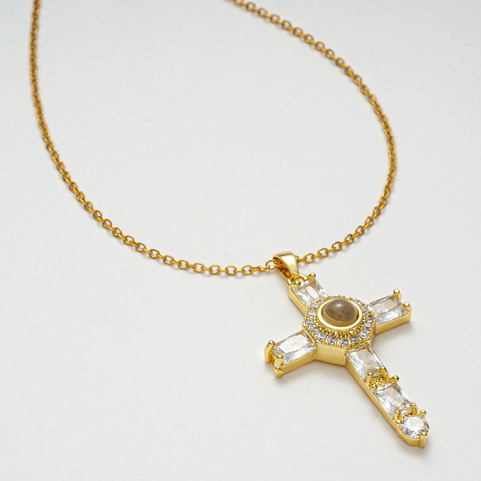 Collana di proiezione a croce personalizzata con foto nascosta oro placcato gioielli religiosi regalo per uomini e donne ciondolo commemorativo