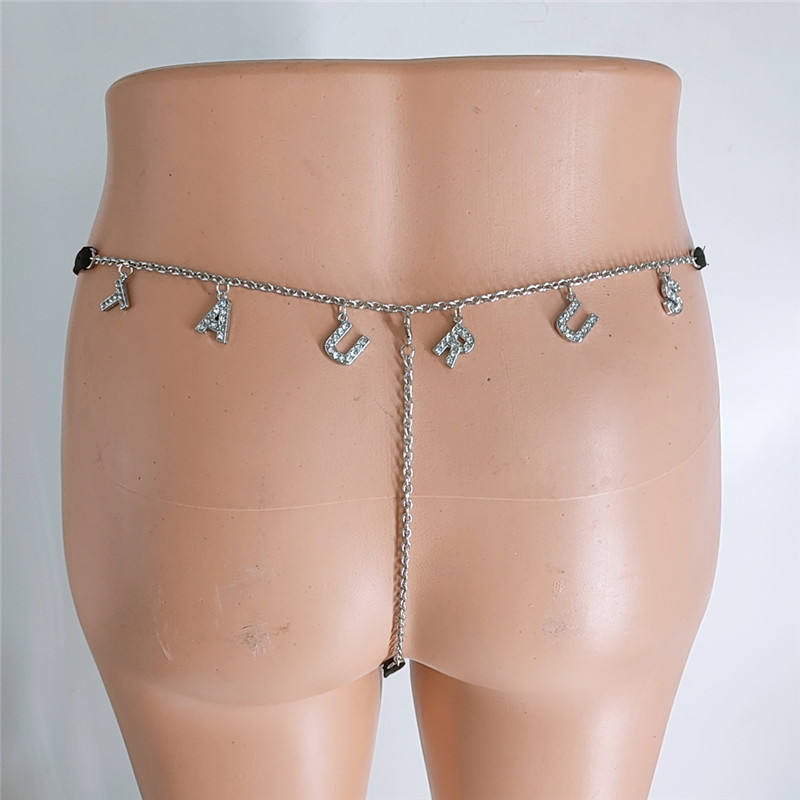 Perizoma Sexy Personalizzato con Segno Zodiacale, Gioielli con Diamanti e Cristalli, Bikini con Lettere Bianche per Donne