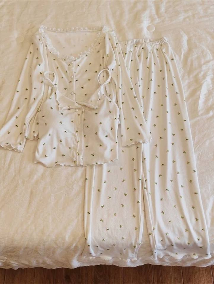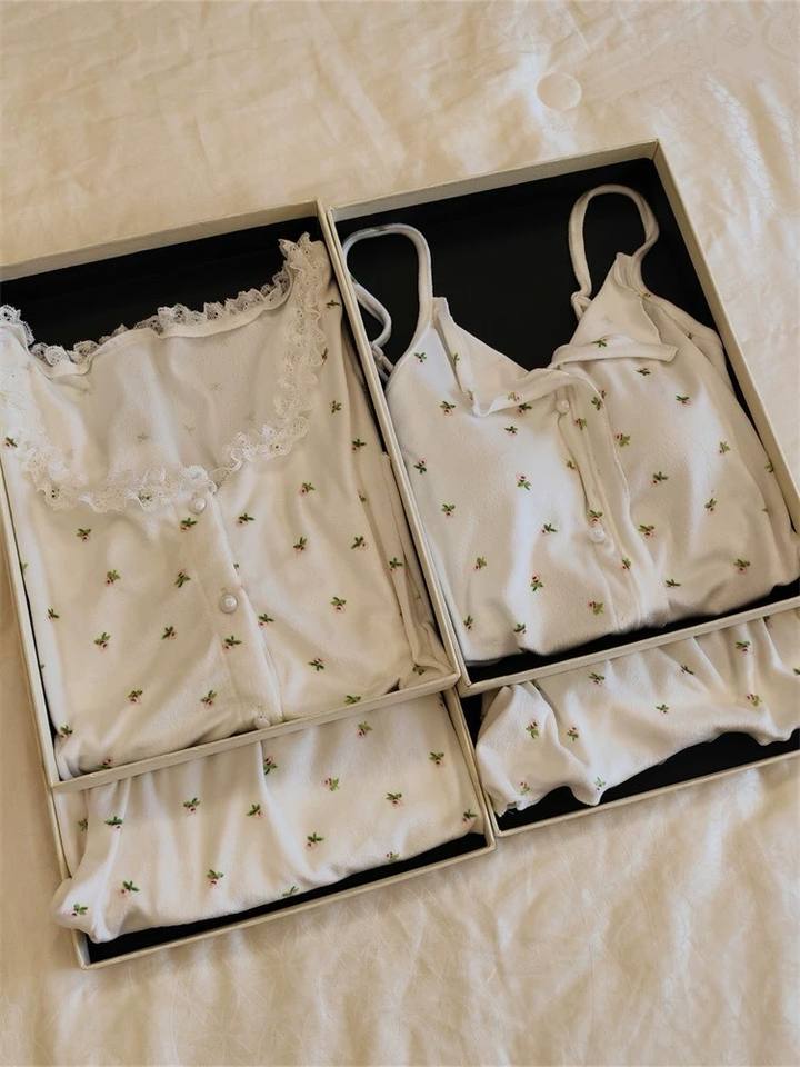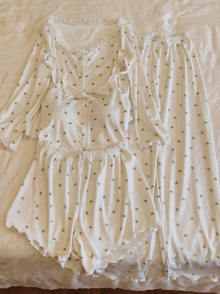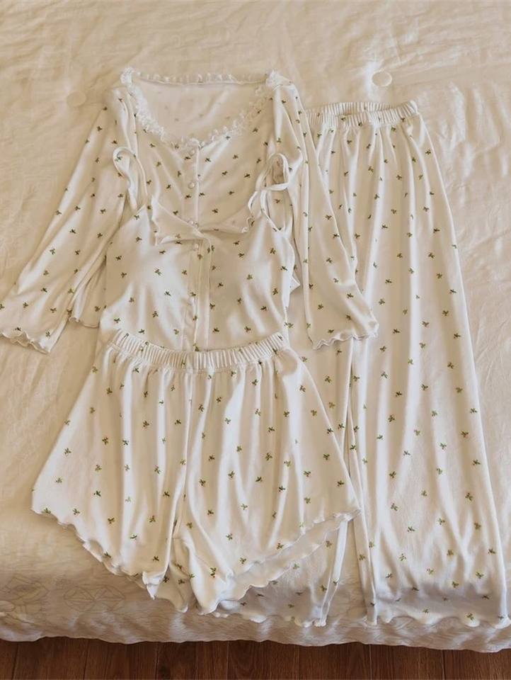 Set Pigiama 4 Pezzi Personalizzato con Stampa Floreale per Donne, Abbigliamento da Notte con Scollo in Pizzo, Pantaloncini e Pantaloni