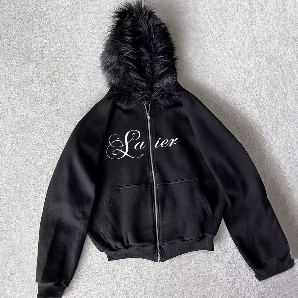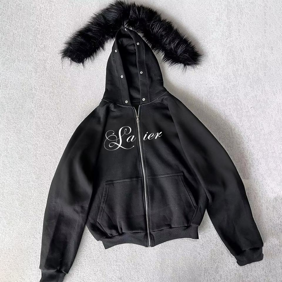 Felpa con Cappuccio e Zip con Colletto in Pelliccia Personalizzata con Stampa DTG, Giacca Streetwear di Alta Qualità per Uomo