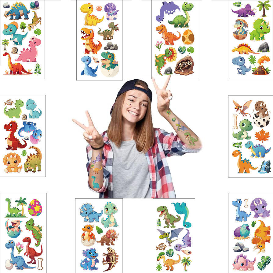 Set di 10 Adesivi Temporanei Impermeabili con Dinosauri per Bambini, Design Personalizzato