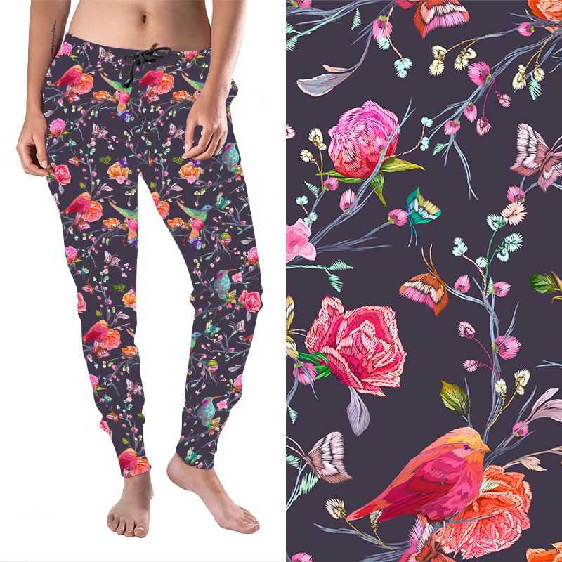 Product Name:Custom design Birds and Floral Printed Women jogger