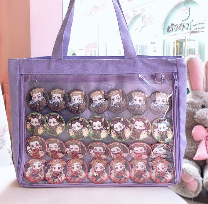 Custom Design Canvas Ita Bag with Clear PVC Window Personalized Collectible Display Shoulder Bag for Anime Merchandise