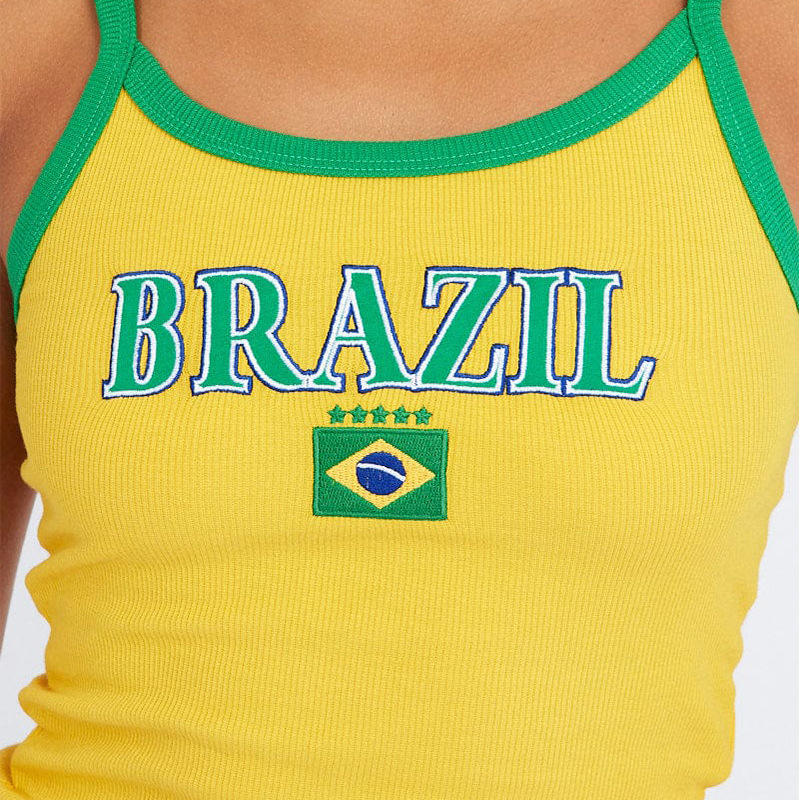 Canottiere a coste con Logo ricamato personalizzato per donna giallo gilet Sexy con bandiera brasiliana tessuto a maglia Casual