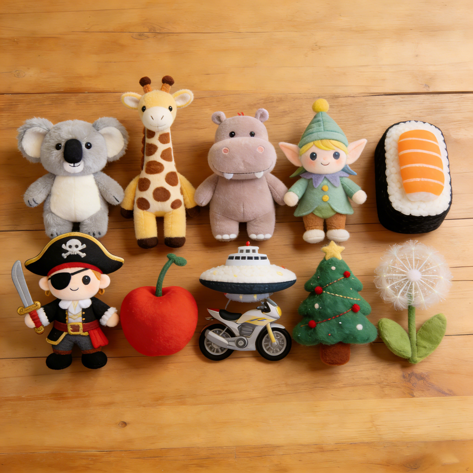 Varie dimensioni di peluche disponibili in magazzino