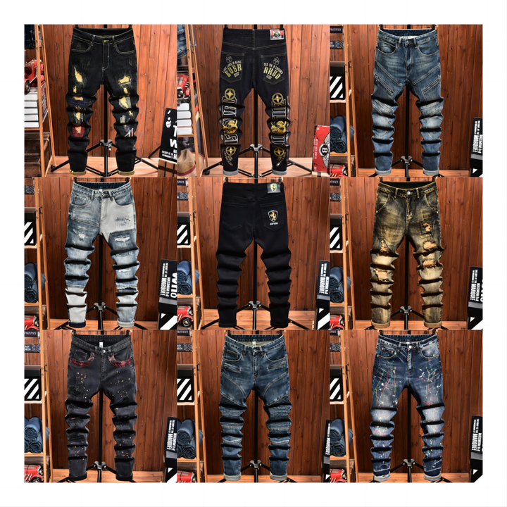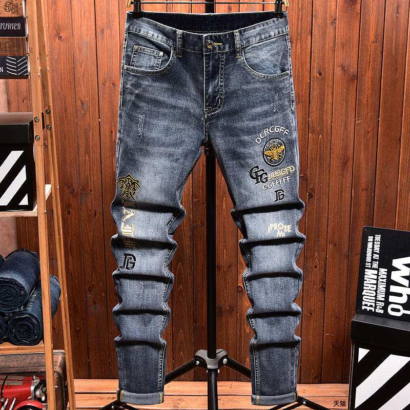 Jeans da Uomo Skinny Casual alla Moda con Design Personalizzato Pantaloni Jeans da Uomo Azzurro Chiaro