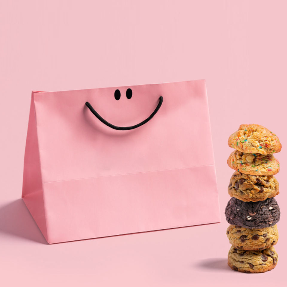 Custom Design Food Grade Pastry Packaging Pink Color Cake Cookie Donut Macaron Sweet Bakery Packaging Box with Pink Paper Bag