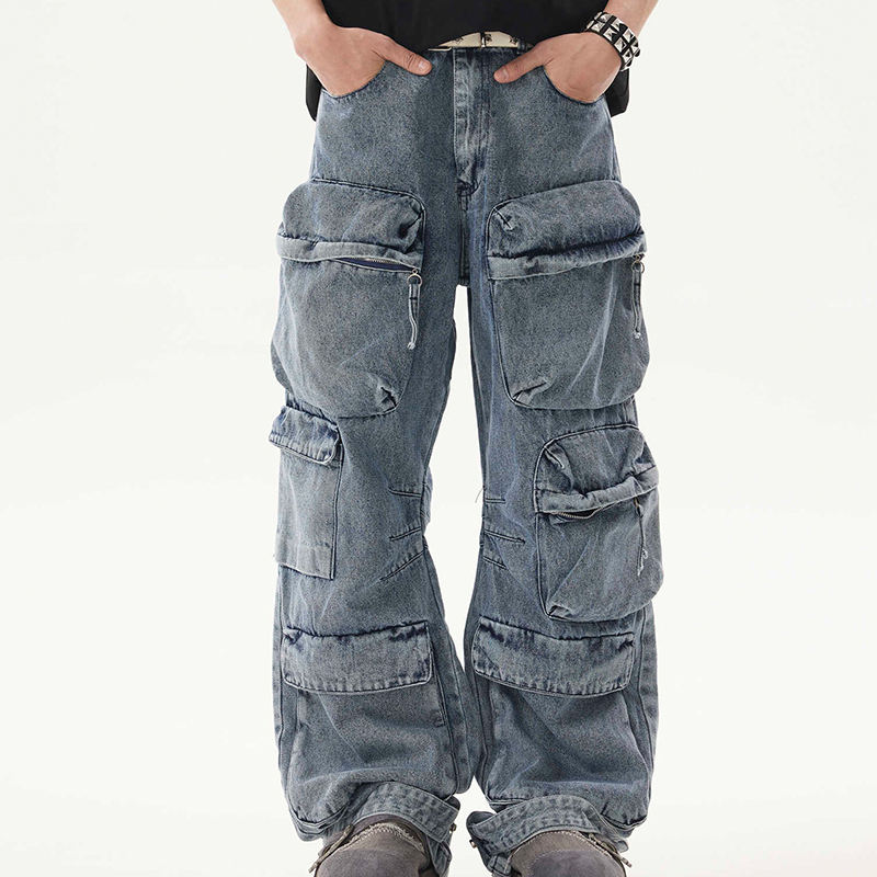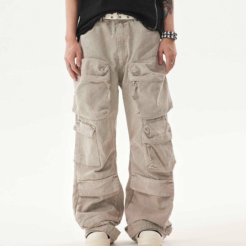 Custom Design Logo Vintage stile Y2K grigio tute da uomo ampio Camper più tasche pantaloni Cargo da uomo