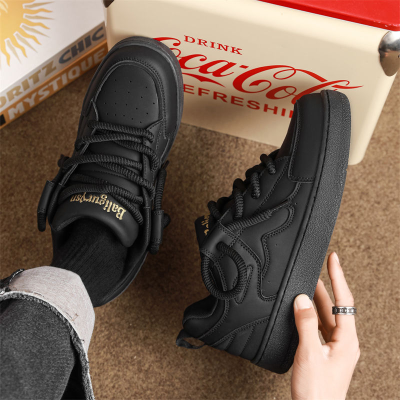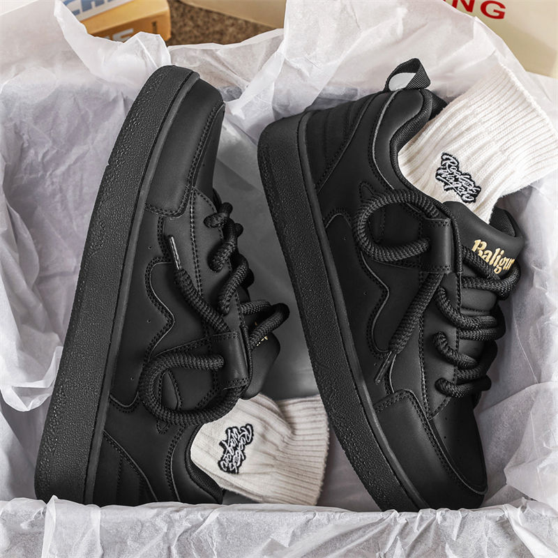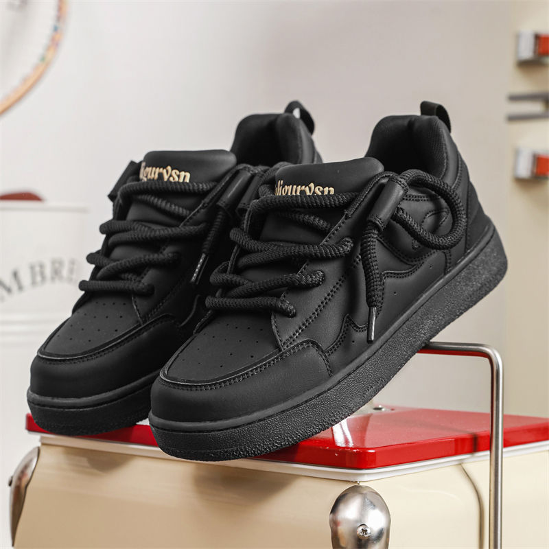 Scarpe da Skateboard per Uomo Personalizzate con Ordine Minimo Basso, Nuove Sneakers Casual Nere con Suola Spessa, Scarpe Sportive in Pelle alla Moda per Studenti
