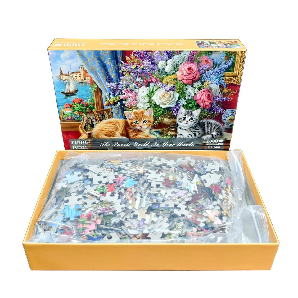 Puzzle Personalizzati in Carta Grigia da 1000 Pezzi, Gioco Educativo Fai-da-Te, Antistress per Adulti, Angoli Quadrati, Logo Personalizzato