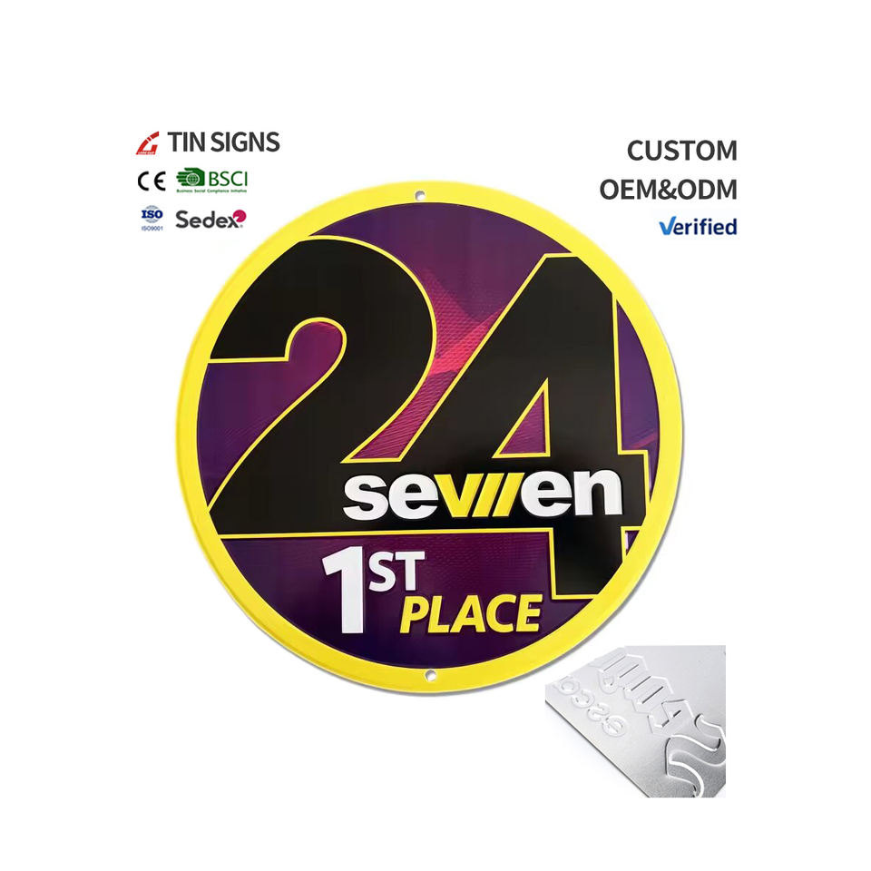 Custom Design Silk Screen Printed Vintage Retro Aluminum Metal Plaque Wall Decorations for Bar Garage Custom Shape Aluminum