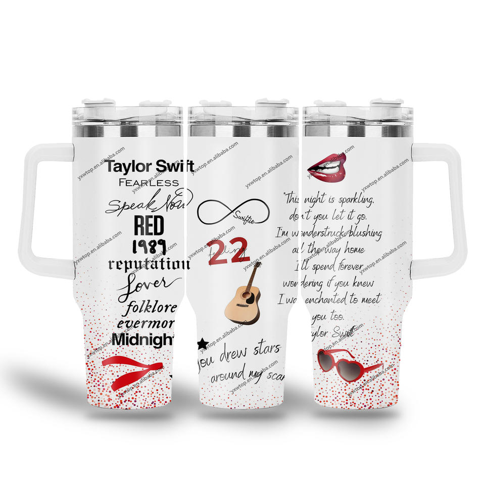 Custom design cantante swift acciaio inox isolato tazza acqua 40oz acciaio inox paglia bicchiere tazze da caffè con manico