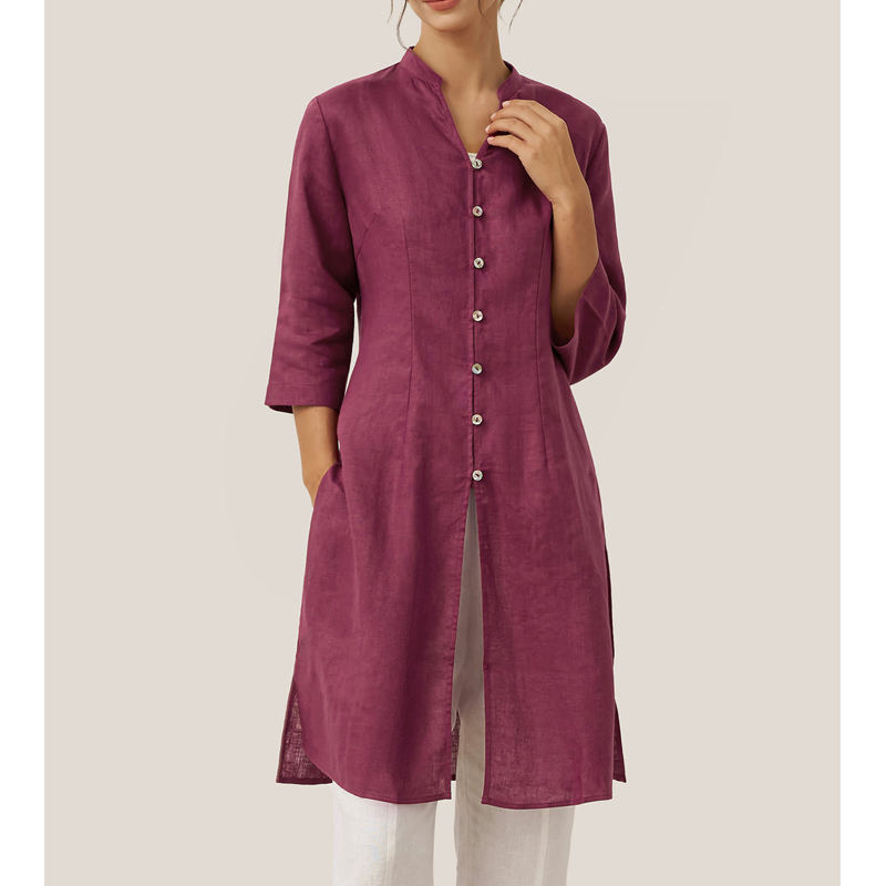 Camicia da Donna in Puro Lino 100% con Maniche Lunghe e Colletto a Bottoni, Design Personalizzato