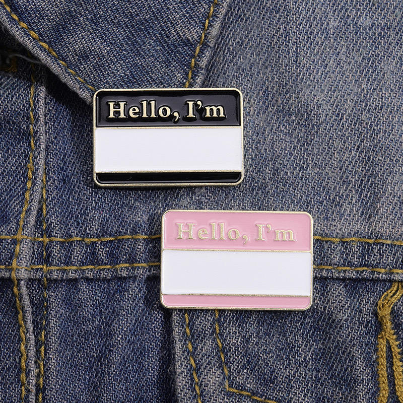Spilla personalizzata con spilla personalizzata Hello World in metallo