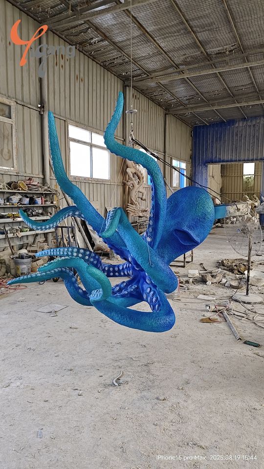 Su misura in fibra di vetro in resina di vetro a parete scultura di polpo a grandezza naturale animale marino astratto per uso interno modello modello