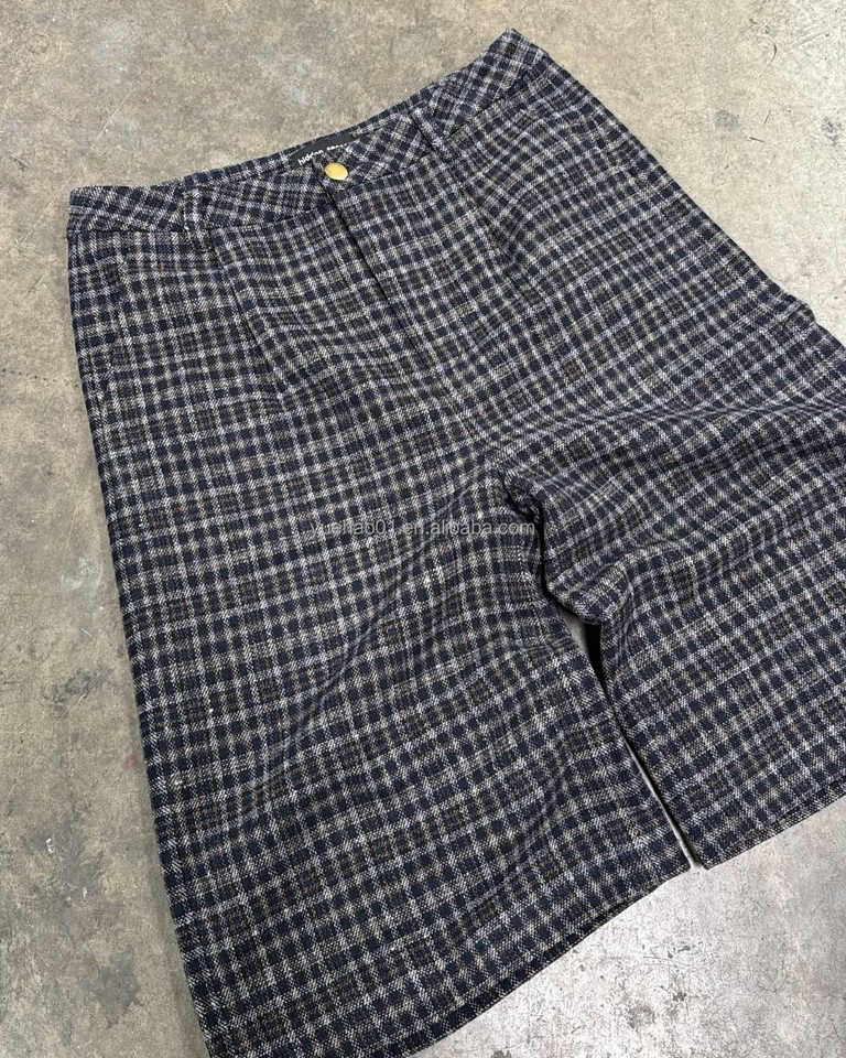 Pantaloni corti di design personalizzati in cotone a quadri oversize pantaloni larghi da uomo Unisex stile estivo Vintage Bermuda corti da uomo