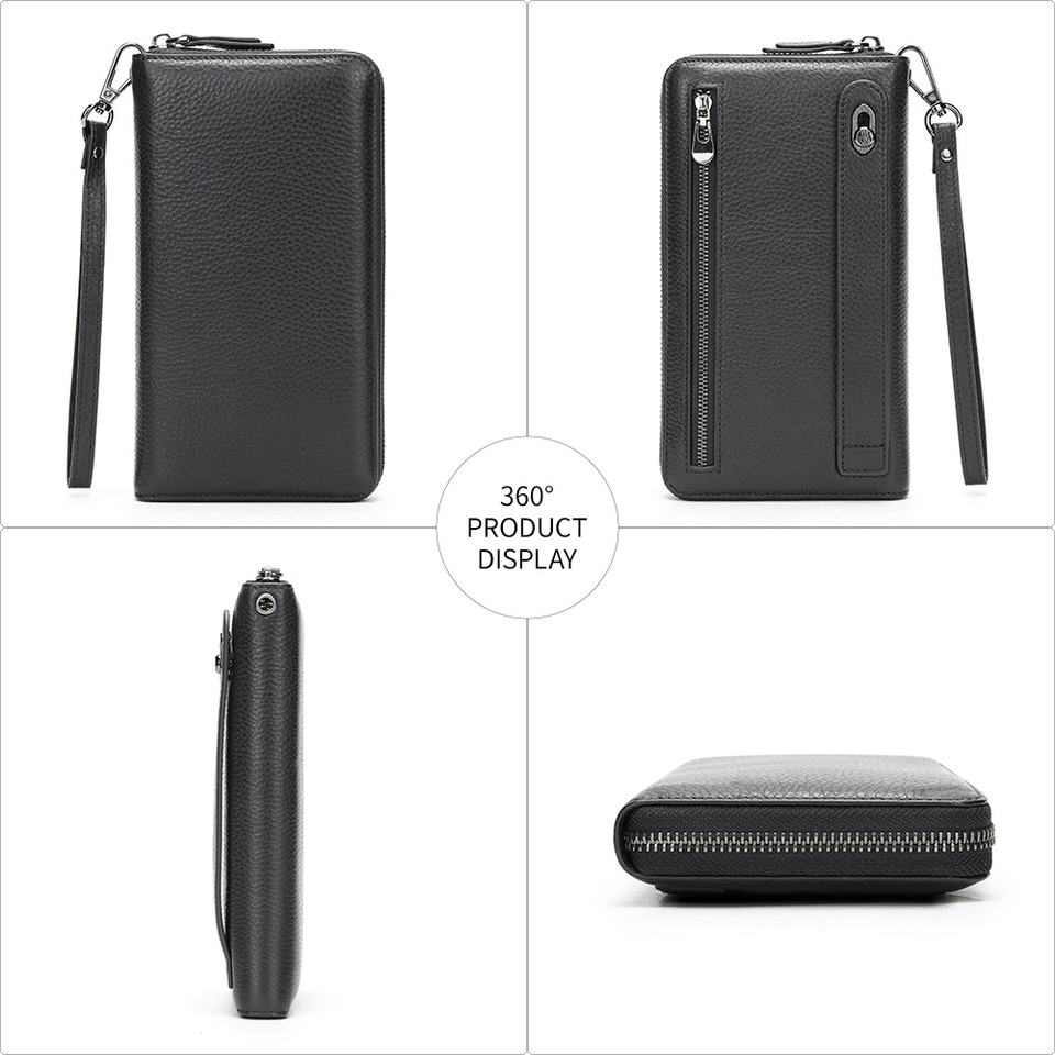 Borsa a Mano per Telefono in Pelle di Vacchetta Personalizzata per Uomo, Portafoglio Lungo con Cerniera alla Moda, Porta Carte con Cinturino da Polso in Vera Pelle