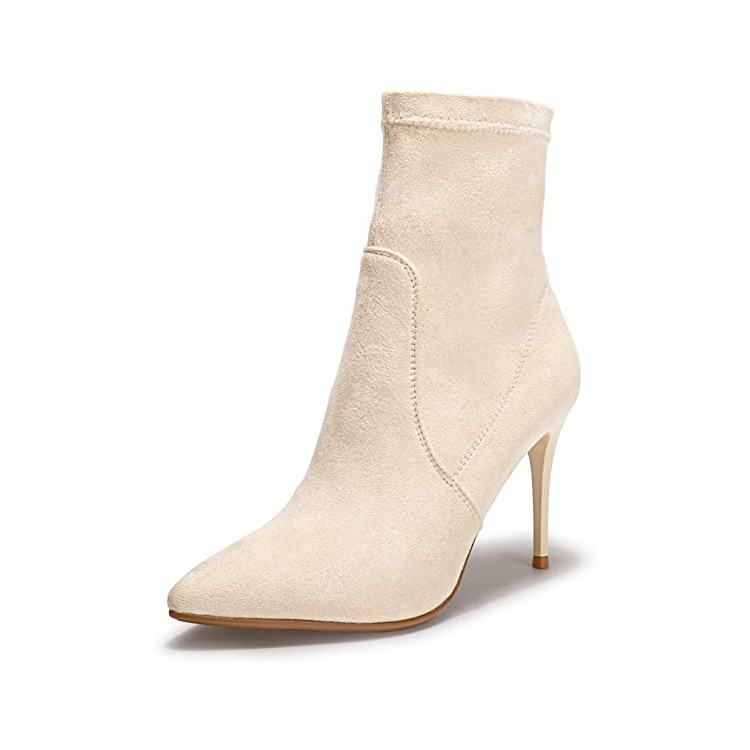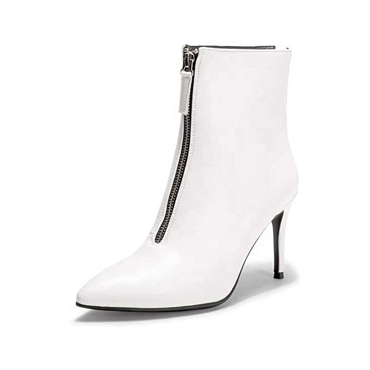 Custom Designer Fashion Women's Sexy Zipper up Ankle Boots Stylish High Heel Suede Upper White Boots Women